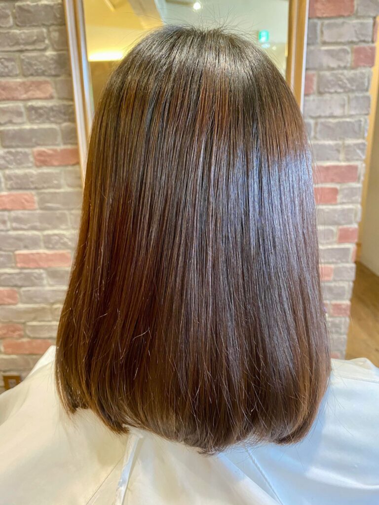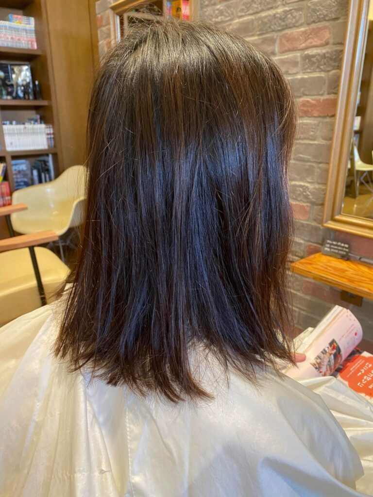 艶感、まとまりは上手くいったが、その後の経過観察で毛先のパリパリ感と絡まりはイマイチ克服できていなかった。