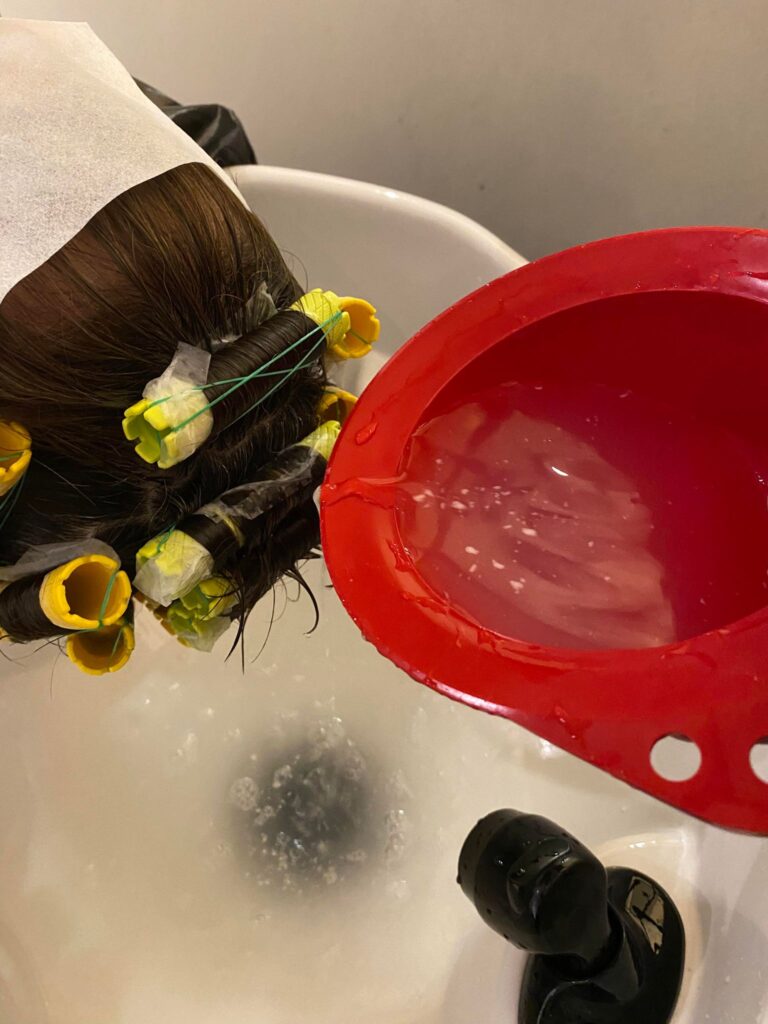 中間水洗後のテストカールで弾力もウェーブも十分と判断